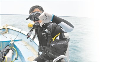 圖① 在廣西潿洲島珊瑚礁修復實驗區海域,黃雯做出下潛手勢。  圖② 在廣西潿洲島珊瑚館辦公室,黃雯在出海前檢查提前制作好的珊瑚苗托。  圖③ 在廣西 ... [更多詳細]