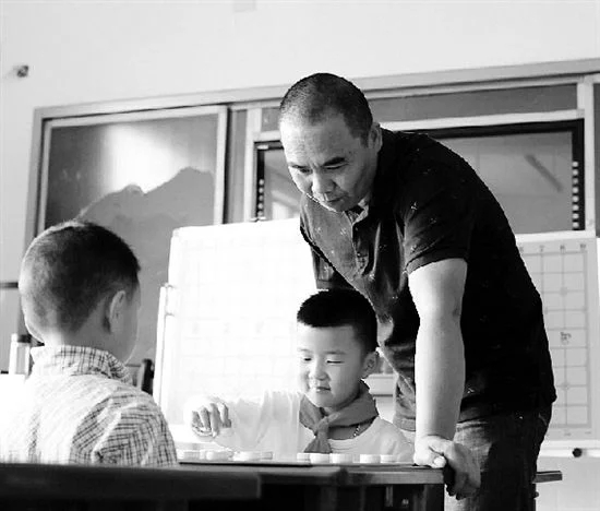 學校走廊里和花壇周邊擺滿了他們的成果——有一兩百盆蘭花和四五百盆多肉植物,這些花盆里立著一張張標明植物名稱的標簽。“這些標簽都是學生幫忙寫上的,現在,這里大部分植物學生都能認出名字來。”徐陸軍說。依靠獨臂攝影指導學生下棋徐陸軍老師在上數學課。
