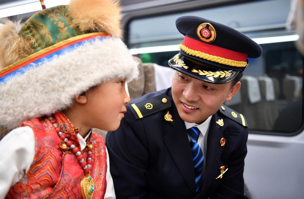 6月25日,&ldquo;旅客&rdquo;斯朗旺扎在復(fù)興號上。新華社記者 覺果 攝  6月25日是拉林鐵路開通運(yùn)營一周年。復(fù)興號動(dòng)車司機(jī)斯朗旺扎與同事調(diào)休后,帶著妻子 ... [更多詳細(xì)]