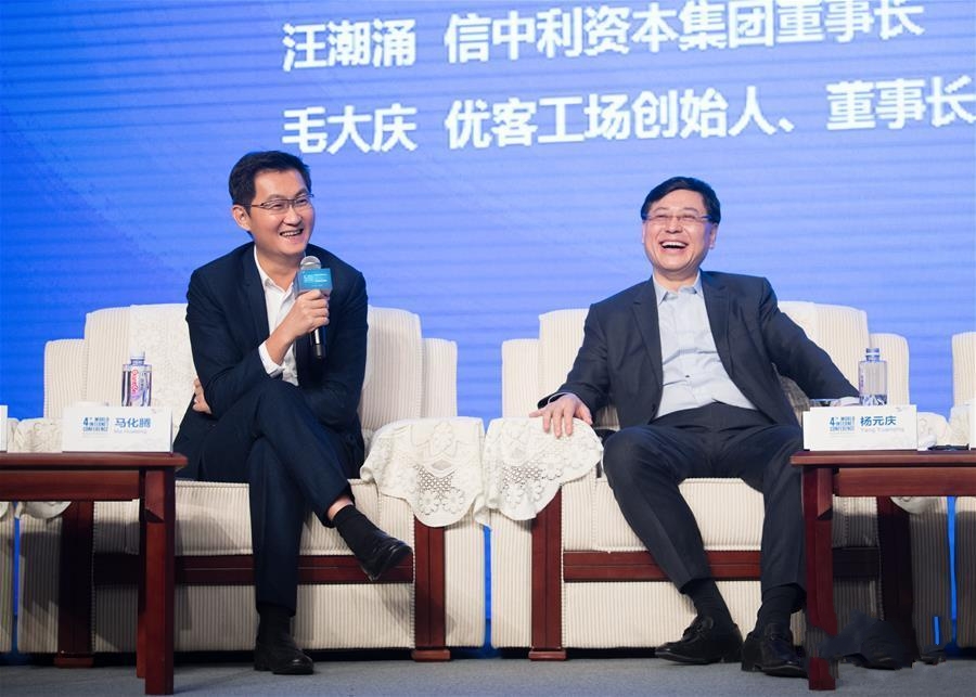 12月4日,騰訊董事會主席兼首席執行官馬化騰(左)回答記者提問。媒體記者們提前一個小時入場,卻發現偌大的會場,居然沒有座位了,很多人只好站著等。會場組織 ... [更多詳細]