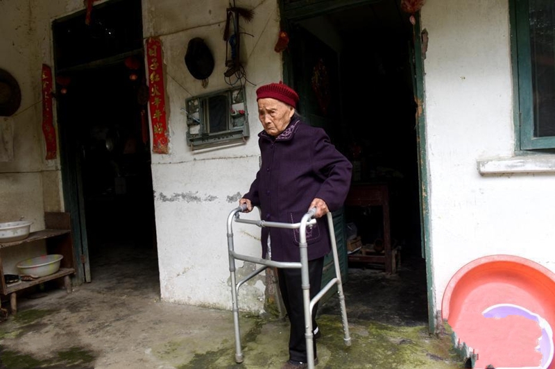 目前,朱鄭氏和二兒子朱維成一家住在一起,朱維成也已經84歲了。朱維成告訴記者,母親雖年事已高,但前兩年還能堅持每天割豬草,打掃院壩,每天吃了早飯出去轉圈,在院壩里的時候,不時抬抬頭甩甩手,做一些簡單的肢體鍛煉。去年的時候,老母親不小心摔了一交造成骨折,去了雙流中醫院動了手術。總的來說,摔跤造成了一定的影響,割豬草掃地的活不能做了,但靠著一張支撐椅,還能每天早上在家附近轉圈。