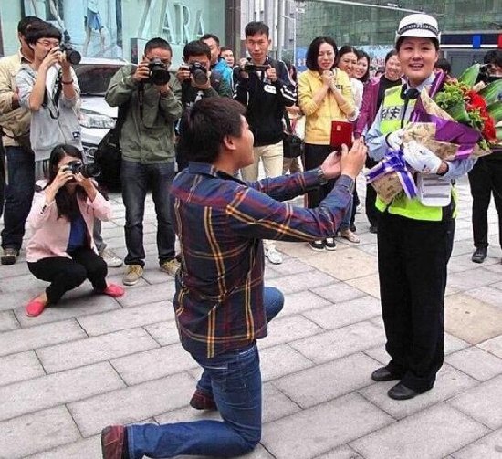 一名小伙子單膝跪地,手上捧著玫瑰花,眼前這位女孩竟然便是一名女交警,看起來,女孩有些驚奇。 據(jù)悉,小伙在一次違章變亂中熟悉了女交警,其時(shí)女交警對他進(jìn)行 ... [更多詳細(xì)]
