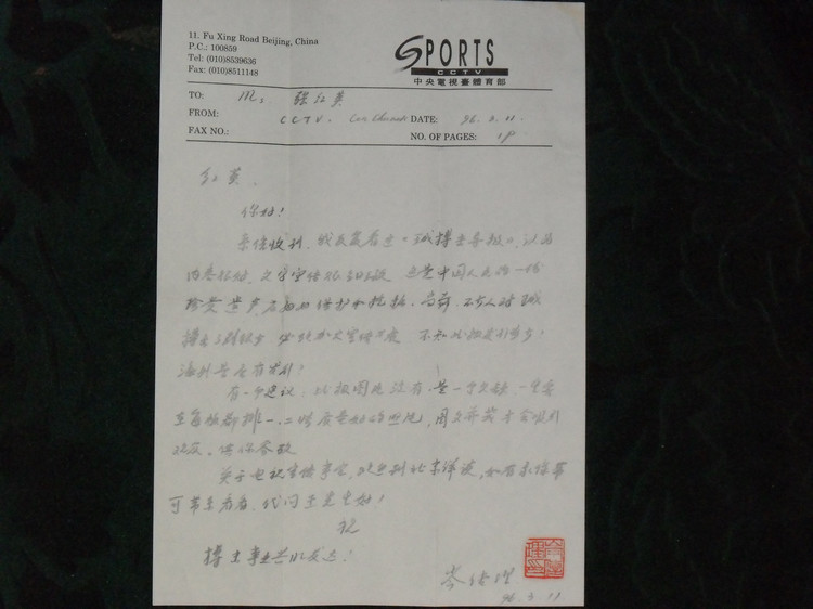 2:CCTV-5節目總監岑傳理博士給王成助手的來信認可并支持“搏聯”創業。