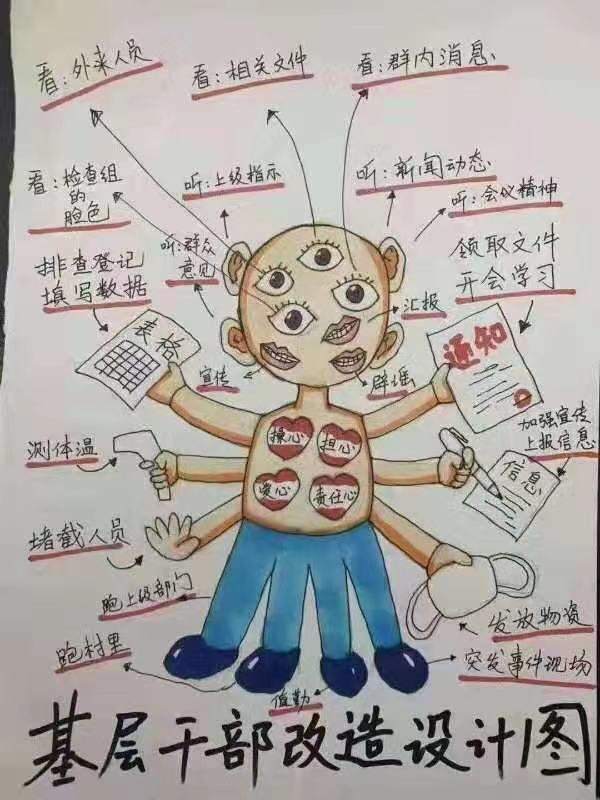 連日來,一幅漫畫在網上熱傳。漫畫中的主角耳聽八方、眼觀四路,還要&ldquo;動手動腳&rdquo;,看外來人員,看相關文件,看群內消息,看檢查組臉色;聽上級指示, ... [更多詳細]