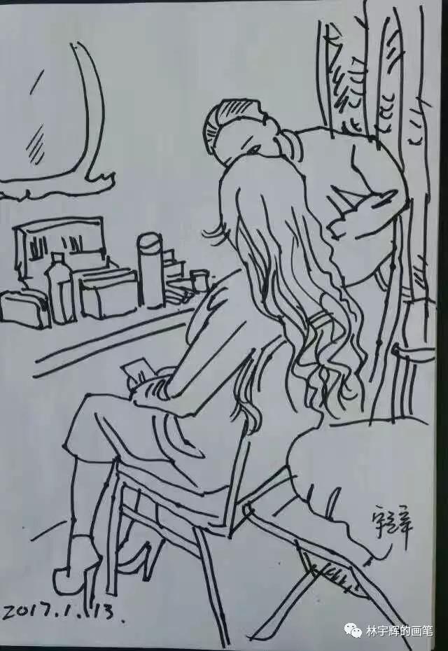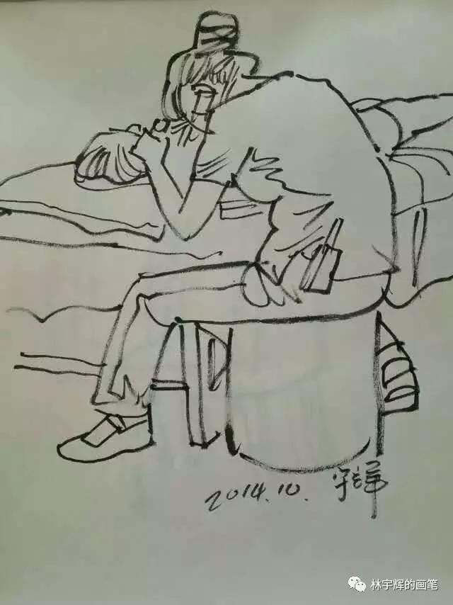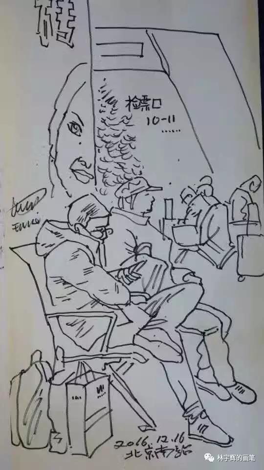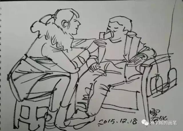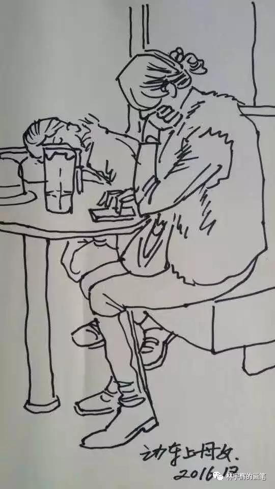林宇輝警官不論走到哪里,都隨身帶著速寫本和畫筆。哪怕是停車等紅燈的時間,也要拿出來畫上幾筆。這因為如此,才練就了如此傳神的畫筆。借著今天的分享,大家可以感受一下。不論是在火車上、醫(yī)院里、飯店里、理發(fā)店、火車站,林警官無時無刻的筆耕不輟,用畫筆記錄著身邊的點點滴滴。