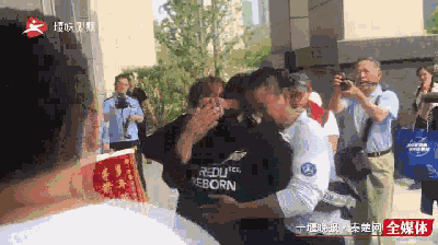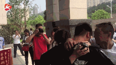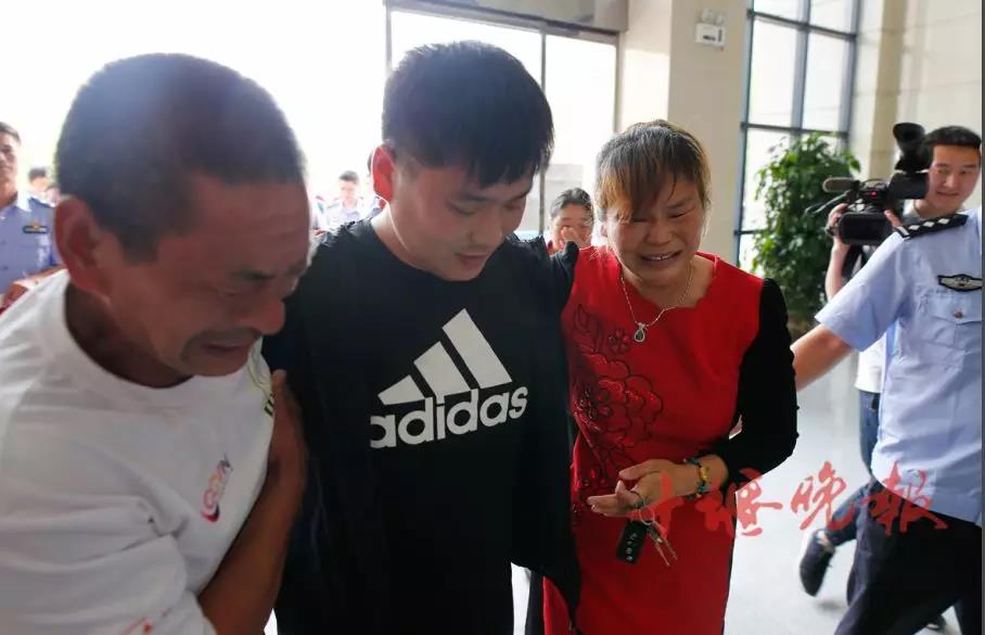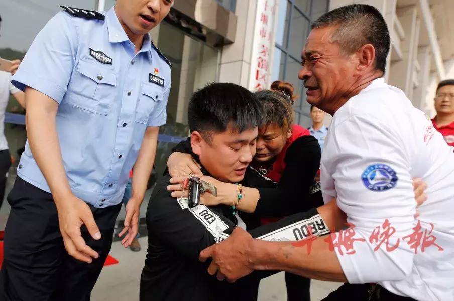 父親李明朝“撲通”一下跪在兒子面前,滿臉淚痕,兒子鵬鵬和母親陳珍見狀后也跪在地上,一家三人緊緊擁抱著抱頭痛哭,最后在民警的攙扶下,將這一家三口拉起來。
