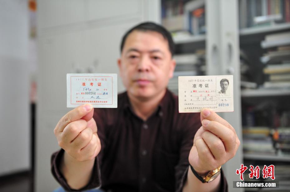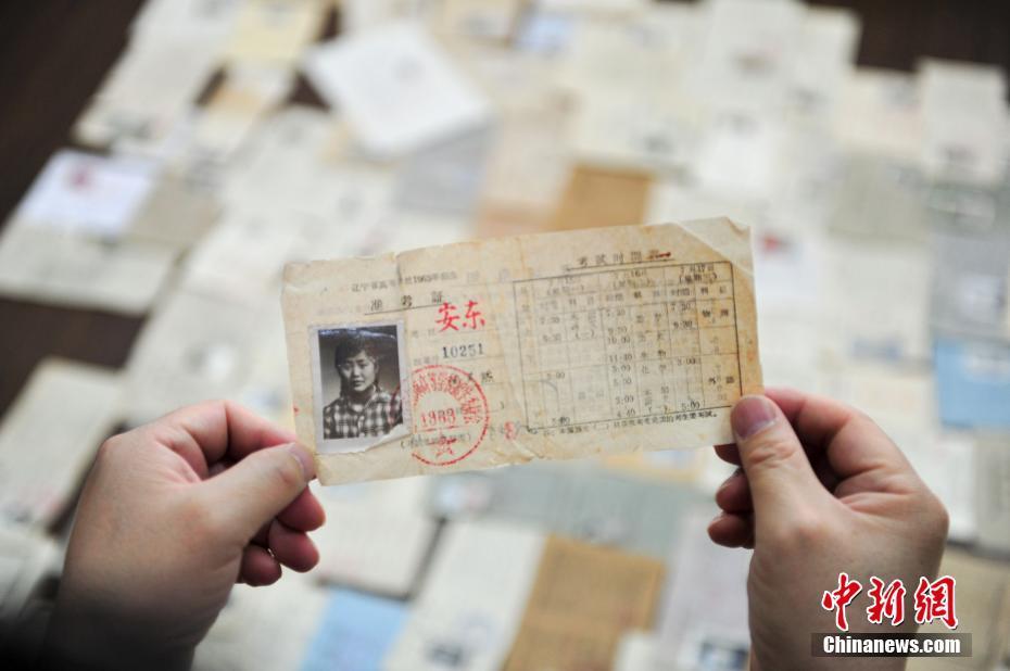 6月9日,遼寧沈陽,詹洪閣展示收藏的高考準考證。沈陽民間收藏家詹洪閣,30年時間已收藏兩百余張高考準考證,希望有機會可以物歸原主。