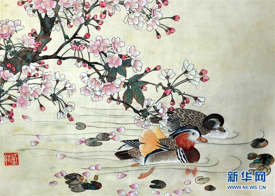 盛悅創(chuàng)作的工筆畫(7月25日攝)。新華社記者 陶明 攝