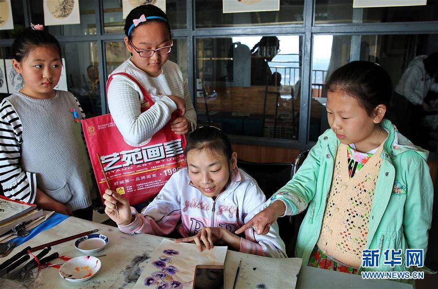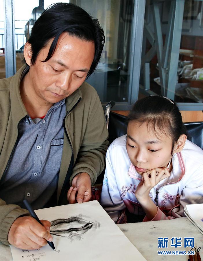 畫室鄭泉老師在輔導(dǎo)盛悅作畫(4月23日攝)。新華社發(fā)(董志奇 攝)