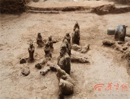 此次考古發掘領隊、省考古研究院秦都咸陽考古隊隊長許衛紅介紹,該墓葬除了發現大量彩繪俑外,還發現有漆墓器、玻璃器、釉器等遺物,另外還發現了上百枚綠豆大小的串珠,抑或是當時北方游牧民族服飾上的配飾。