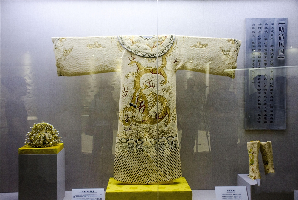 4月18日,廣西北海南珠宮博物館內(nèi)展示的一件珍珠龍袍鑲嵌了約50000顆珍珠,奢華無比。此外龍冠鑲嵌了約3800顆珍珠,龍靴鑲嵌了約11300顆珍珠。北海是中國海水珍 ... [更多詳細]