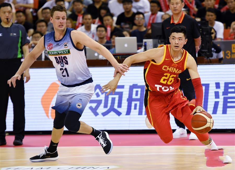 6月19日,中國隊球員易建聯(中)在比賽中觀戰。 當日,在2019年中澳國際男籃對抗賽青島站比賽中,中國隊以89比77戰勝澳大利亞NBL聯隊。 6月19日,中國隊球員陳 ... [更多詳細]