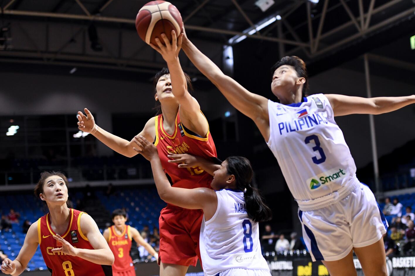 11月17日,中國隊球員韓旭(上左)與菲律賓隊球員貝納迪諾(上右)在比賽中拼搶。新華社記者郭磊攝17日,中國女籃在奧克蘭舉行的東京奧運會女籃資格賽亞洲區預選 ... [更多詳細]