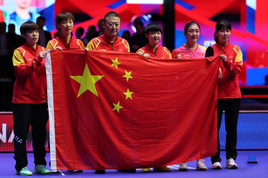 2月24日,中國隊奪冠后慶祝。當日,在韓國釜山進行的2024年國際乒聯釜山世界乒乓球團體錦標賽女子團體決賽中,中國隊3比2戰勝日本隊,奪得冠軍。新華社記者 張濤 ... [更多詳細]
