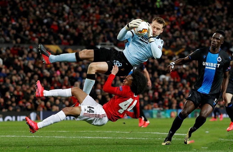 2月27日,曼聯隊球員鐘塔西(下)在比賽中和布魯日隊守門員米尼奧萊拼搶。 當日,在比利時布魯日進行的2019-2020賽季歐羅巴聯賽1/16決賽第二回合比賽中,英超曼 ... [更多詳細]