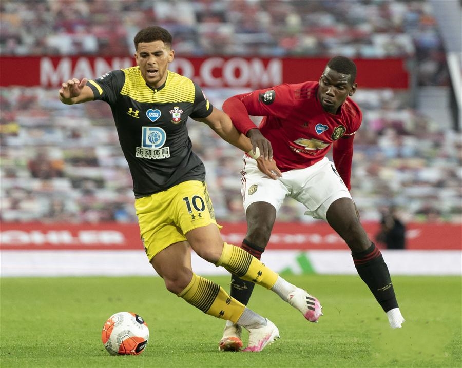 7月13日,曼聯隊球員馬夏爾(右三)進球后與隊友慶祝。 當日,在2019-2020賽季英格蘭足球超級聯賽第35輪比賽中,曼聯隊主場以2比2戰平南安普敦隊。 新華社發7月 ... [更多詳細]