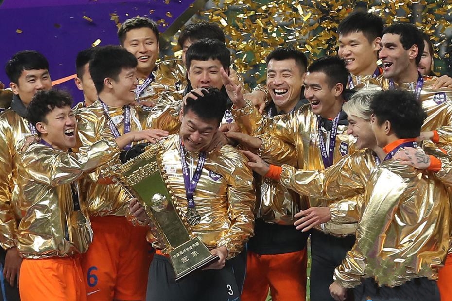 圖為山東魯能泰山隊球員在頒獎儀式上捧杯慶祝。 12月19日,2020賽季中國足協杯決賽在江蘇省蘇州市舉行,經過激烈角逐,山東魯能泰山隊以2比0戰勝江蘇蘇寧易購隊 ... [更多詳細]