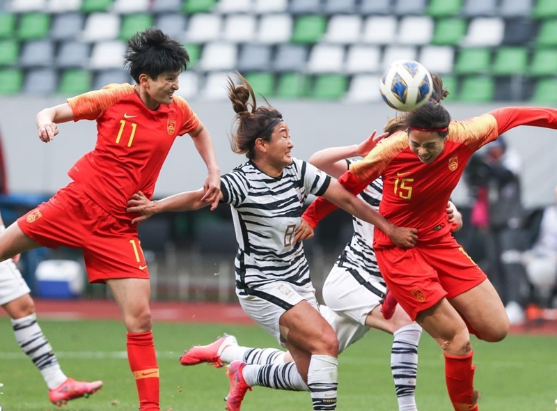 4月13日,中國隊球員王霜(中)在比賽中慶祝進球。  當日,在江蘇蘇州舉行的東京奧運會女足亞洲區預選賽附加賽第二回合的比賽中,中國隊通過加時賽以2比 ... [更多詳細]