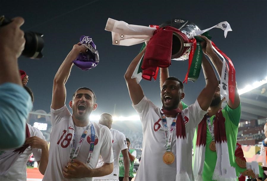 2月1日,卡塔爾隊在頒獎儀式上慶祝奪冠。 當(dāng)日,在阿聯(lián)酋的阿布扎比舉行的2019亞洲杯足球賽決賽中,卡塔爾隊以3比1戰(zhàn)勝日本隊,奪得冠軍。 新華社記者丁旭攝2月 ... [更多詳細(xì)]