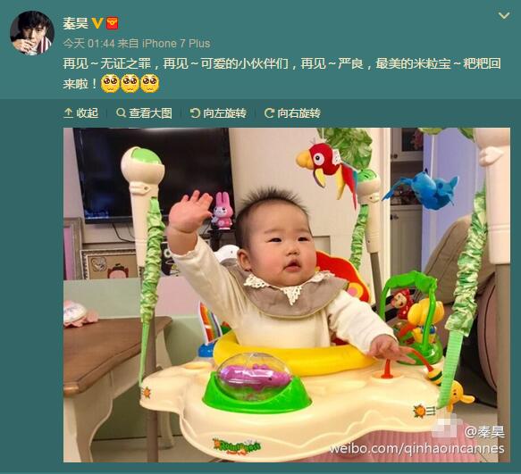 微博截圖2月13日,伊能靜老公秦昊曬出小米粒的照片,照片中,小米粒坐在玩具車上,手舞足蹈,小手胖嘟嘟的,頭發立起來,十分可愛。秦昊配文:&ldquo;再見~無證 ... [更多詳細]