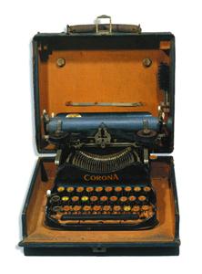 一臺打字機 一臺打字機,小巧別致,略有殘破,機身固定在黑色皮紙包裹的木盒內,合起來如同一只微型手提箱,打開箱蓋則能立即進入工作模式。這臺打字機牌子為“CORO-NA”,曾被李大釗使用過。