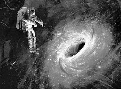 據此,科學家推斷出近乎天方夜譚的觀點:如果有一個質量極大的恒星,它自身產生的重力也無比巨大,最終恒星必定會因為不堪自身重負而坍縮成一個密度和曲率都無窮大、體積無窮小的點。在這個點的周邊,會創造出一片引力極強質量極大、連光都無法逃出的特殊區域。在時空的維度上,就像一個無比深凹的洞。科學界給了一個簡單的名詞:黑洞。