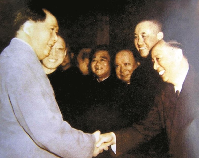 1.20世紀50年代,毛澤東主席接見時任全國政協委員的劉靖基(右一)等代表人士  70年前,大批民主人士響應中共中央&ldquo;五一口號&rdquo;由滬北上參加 ... [更多詳細]