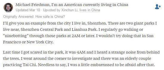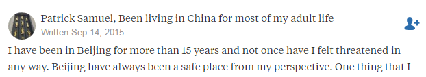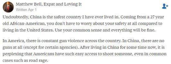 作為一個27歲非洲裔美國人,中國無疑是我待過最安全的國家!和美國比,你完全不用擔心自己的人身安全。只要你有腦子,完全可以安居樂業。