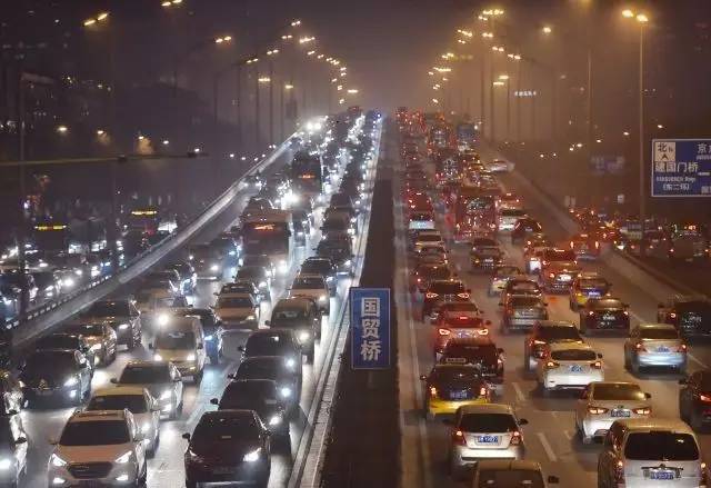 汽車在北京東三環國貿橋上行駛(新華社記者羅曉光攝)
