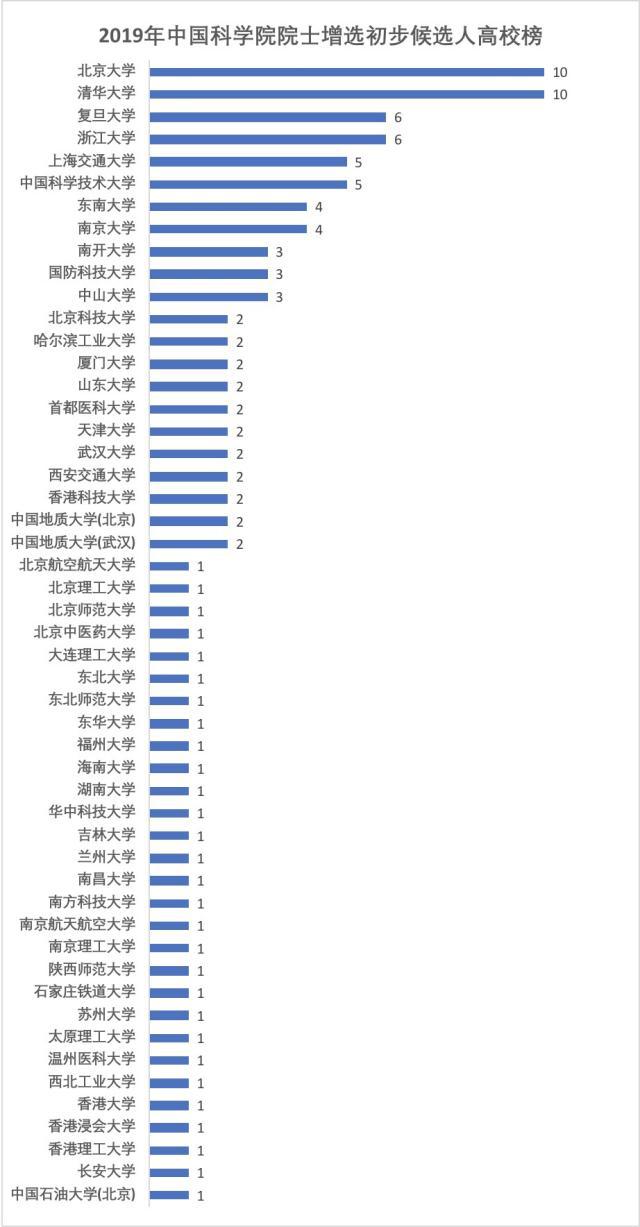 中科院院士增選初步候選名單出爐:中科院清北復旦浙大居前五