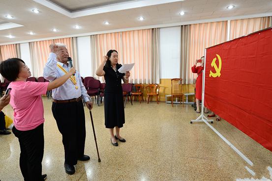 面對著鮮艷的黨旗,緊握右拳,莊嚴宣誓。9月21日,102歲的抗戰老兵張守中在北京林業大學社區黨支部正式加入中國共產黨,在期頤之年圓了入黨夢。圖為102歲的抗戰 ... [更多詳細]