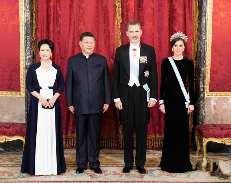 當地時間11月28日晚,正在西班牙進行國事訪問的中國國家主席習近平出席西班牙國王費利佩六世在馬德里王宮舉行的隆重歡迎宴會。這是習近平和夫人彭麗媛同費利 ... [更多詳細]