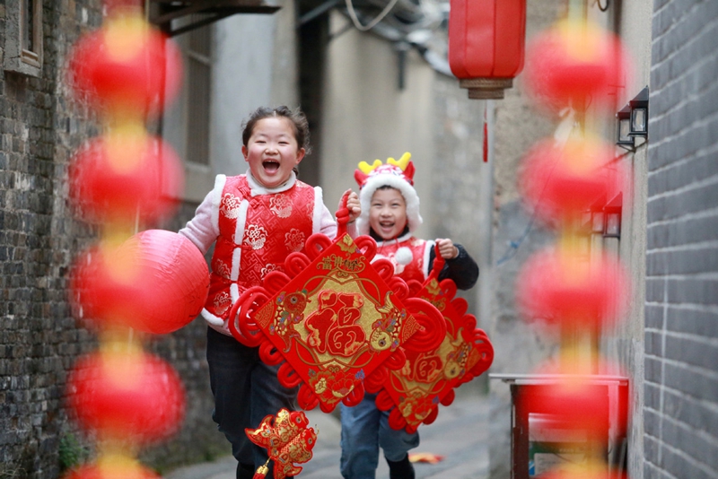 1月24日,在江蘇省揚州市何園社區,小朋友們手拿燈籠和中國結開心玩耍。新華社發(孟德龍攝)春節將至,各地開展豐富多彩的活動,營造喜慶祥和的節日氛圍。1月2 ... [更多詳細]