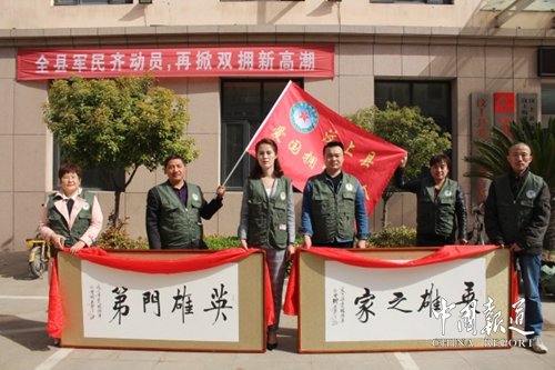 2018年4月8日上午,為深入貫徹習近平總書記在出席十三屆全國人大一次會議解放軍和武警部隊代表團全體會議時讓軍人成為全社會尊崇的職業的指示精神,營造尊崇英雄,關愛烈軍屬的社會氛圍,山東省汶上縣愛國擁軍協會在清明節積極開展為革命烈軍屬贈送光榮匾活動。參加這次活動的有縣雙擁辦副主任何敬鋒、愛國擁軍協會黨支部書記趙忠全、副會長鞠穎、愛心會員張連建、劉淑美、胡桂敏和汶上縣青年書法家陳鵬舉。
