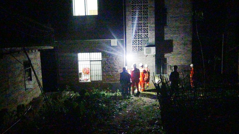 由于事發地為偏遠山區,19時45分許, 救援官兵才驅車到達現場。在群眾的引導下,消防官兵在兩個房子的夾墻的縫隙之間發現了被卡的男孩。墻縫寬大約16厘米,長約30米,而小孩就卡在墻縫深處,進退不得,救援人員無法靠近救援。兩個房子是磚混結構,分別有三層、五層的樓房,無法直接拆墻營救。