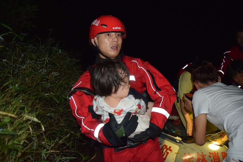 19時38分,在抵達村口后,由于村中道路多處被水淹沒,經過村民幫忙引導救援官兵順利到達村中。到場后,救援官兵偵查發現:村中已是一片汪洋,河水已漲二樓,村中時不時傳來房子倒塌的隆隆聲。隨后,救援官兵在村民的引導駕駛橡皮艇攜帶救生器材及食物進入村中搜救被困在家中的村民。在搜救過程中,救援官兵在村民的引導,在洪水中七拐八繞向村中前進。經過官兵長達6個小時的努力,成功將村中被困的16名村民轉移至安全區域。