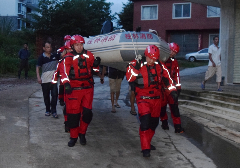 2017年7月2日下午17時50分,象山中隊接到報警:廣西桂林市雁山區雁山鎮蔣家壩有多家村民被圍困,村中部分老房子因洪水浸泡已多處倒塌。警情就是命令,接到報警后,中隊官兵在支隊司令部的帶領下前往處置。