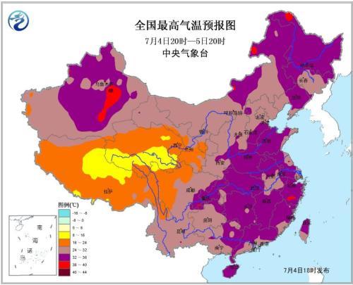 中新網北京7月5日電 據氣象部門預測,今天起,伴隨主要雨帶向北移動,四川盆地、黃淮等局地或將迎來暴雨或大暴雨。與此同時,江南、華南東部的部分地區將面臨高溫"烤驗",或出現日最高氣溫在35~38℃的持續性高溫天氣。