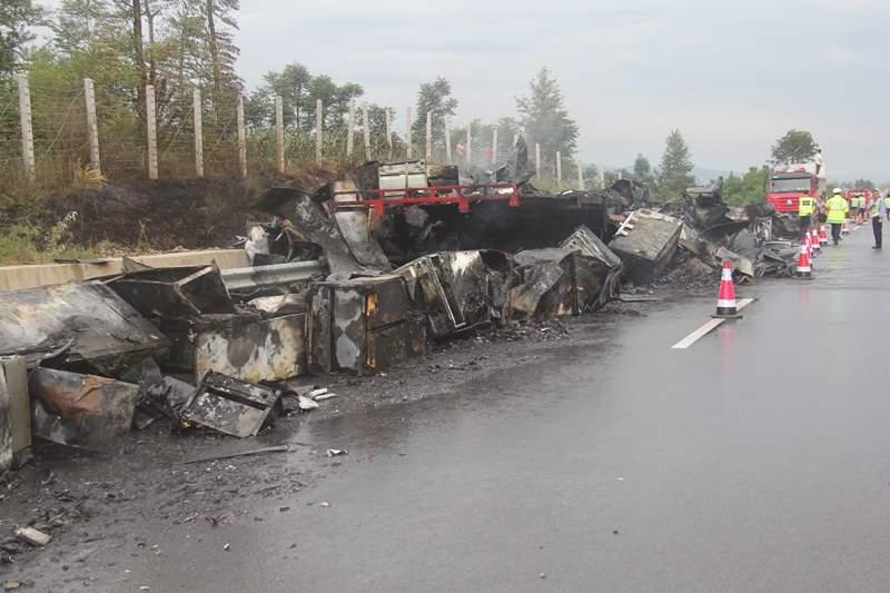 7月23日16時(shí)17分,云南昭通市特勤消防中隊(duì)接到指揮中心調(diào)令稱(chēng):一輛滿(mǎn)載電冰箱的掛車(chē)在昭麻高速公路靖安段發(fā)生自燃,無(wú)人員被困。接到命令后,中隊(duì)立即出動(dòng)2車(chē)13人趕往現(xiàn)場(chǎng)處置。