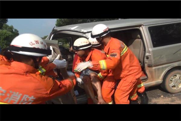 8月30日下午15時15分,江西吉水縣消防大隊接到群眾報警稱:吉水縣城往雙村鎮方向發生車禍,駕駛員被卡在車內無法動彈,請求消防隊前來救援。接到報警后,吉水縣中隊迅速出動一輛搶險救援車,7名官兵趕赴車禍現場。 到達現場后,指揮員經過觀察了解,是一輛小型貨運車和一輛面包車相撞,由于撞擊力度比較大,導致兩輛車車頭嚴重變形。其中面包車駕駛室完全變形,擋風玻璃破碎,地面一片狼藉。司機被卡在座位上,雙腳被離合器死死壓住無法動彈,身上和頭上還在不停地流血。針對這一情況,消防官兵立即展開救援行動,利用液壓破拆工具組對變形駕駛位置進行剪切以及支撐擴張,同時不斷與被困者對話,穩定其思想情緒。經過20分鐘的緊張施救,被困的司機被成功救出,立即送往醫院進行救治。